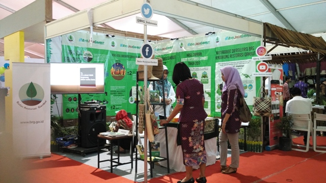 Monic dan Riska, penjaga stand BRG menjelaskan kepada MMC, bahwa dalam upaya restorasi, BRG juga melakukan peningkatan kapasitas masyarakat dengan pelatihan di berbagai desa di Kalteng, diantaranya Desa Sei Gohong dan Mentangai. Petani di dua desa itu dibantu dengan berbagai pelatihan untuk mengelola madu asli dari hutan gambut. Hasil dari pengelolaan itu ditampilkan dalam pameran, dan bisa dicoba, jika tertarik, masyarakat bis alangsung memesan lewat telepon yang tertera dalam kemasannya.