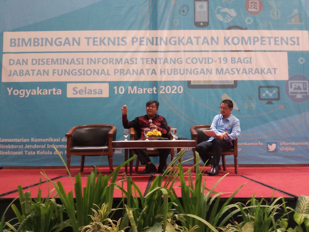 Baca juga : Pj. Bupati Barsel Deddy Winarwan Kunjungi Desa TabatanHal ini dikatakan Direktur Tata Kelola dan Kemitraan Komunikasi Publik (Dit TK3P), Direktorat Jenderal Informasi dan Komunikasi Publik (Ditjen IKP), Kementerian Komunikasi dan Informatika (Kemkominfo), Selamatta Sembiring saat membuka Bimbingan Teknis (Bimtek) Peningkatan Kompetensi dan Diseminasi Informasi tentang Covid-19 bagi Jabatan Fungsional Pranata Humas (JFPH), Selasa (10/3/2020) di Yogyakarta.