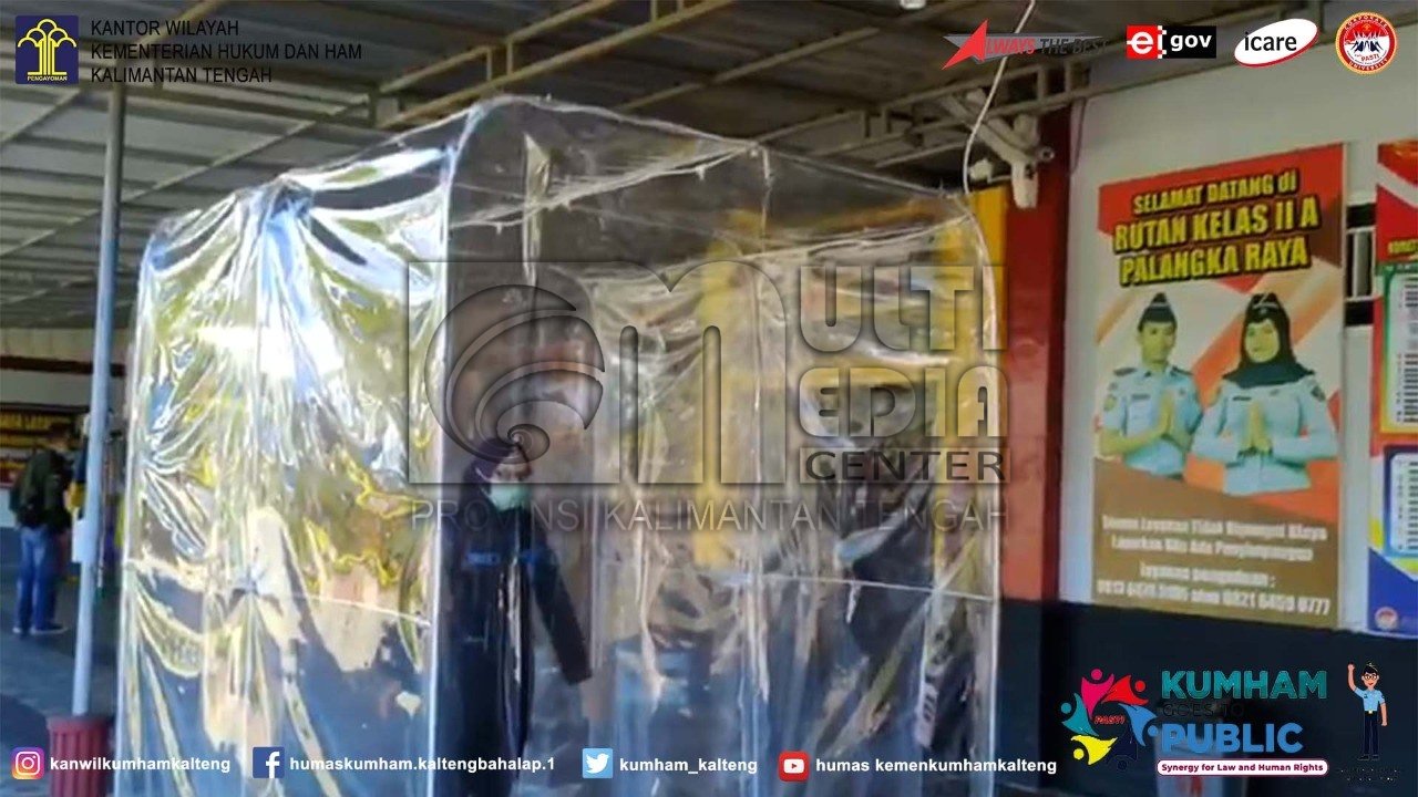 MMCKalteng - Palangka Raya - Antisipasi penyebaran Corona Virus Disease (COVID-19) di Lembaga Pemasyarakatan (Lapas) dan Rumah Tahanan Negara (Rutan), Unit Pelaksana Teknis Pemasyarakatan (UPT) yang berada di bawah lingkungan Kantor Wilayah Kalimantan Tengah memasang bilik sterilisasi, Jumat (27/3/2020).