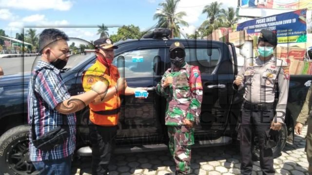 mmckalteng - KUALA KAPUAS – Jajaran Polres Kapuas menyerahkan stiker edukasi dan imbauan terkait memutus mata rantai penyebaran Virus Corona ke posko induk Gugus Tugas Percepatan COVID-19.