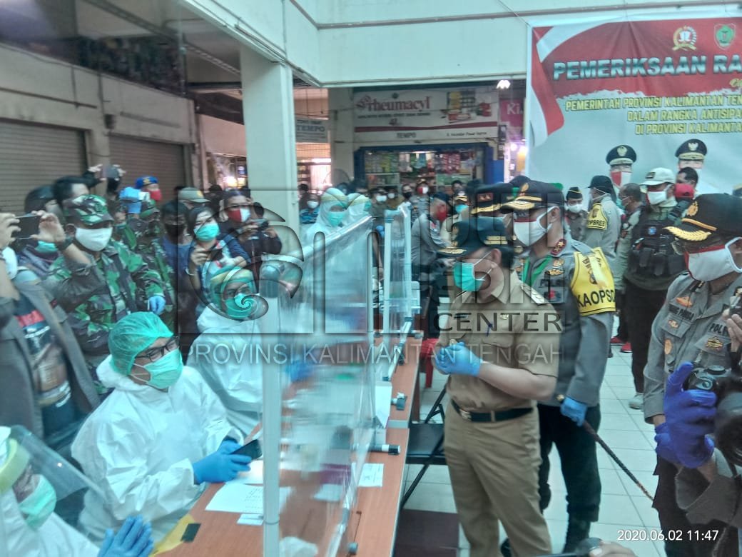 MMCKalteng - Kotawaringin Timur - Gubernur Kalimantan Tengah (Kalteng) H. Sugianto Sabran mengunjungi dan memantau langsung pelaksanaan Rapid Test massal di Pusat Perbelanjaan Mentaya (PPM) di Sampit, Kabupaten Kotawaringin Timur (Kab. Kotim), Selasa (02/06/2020).