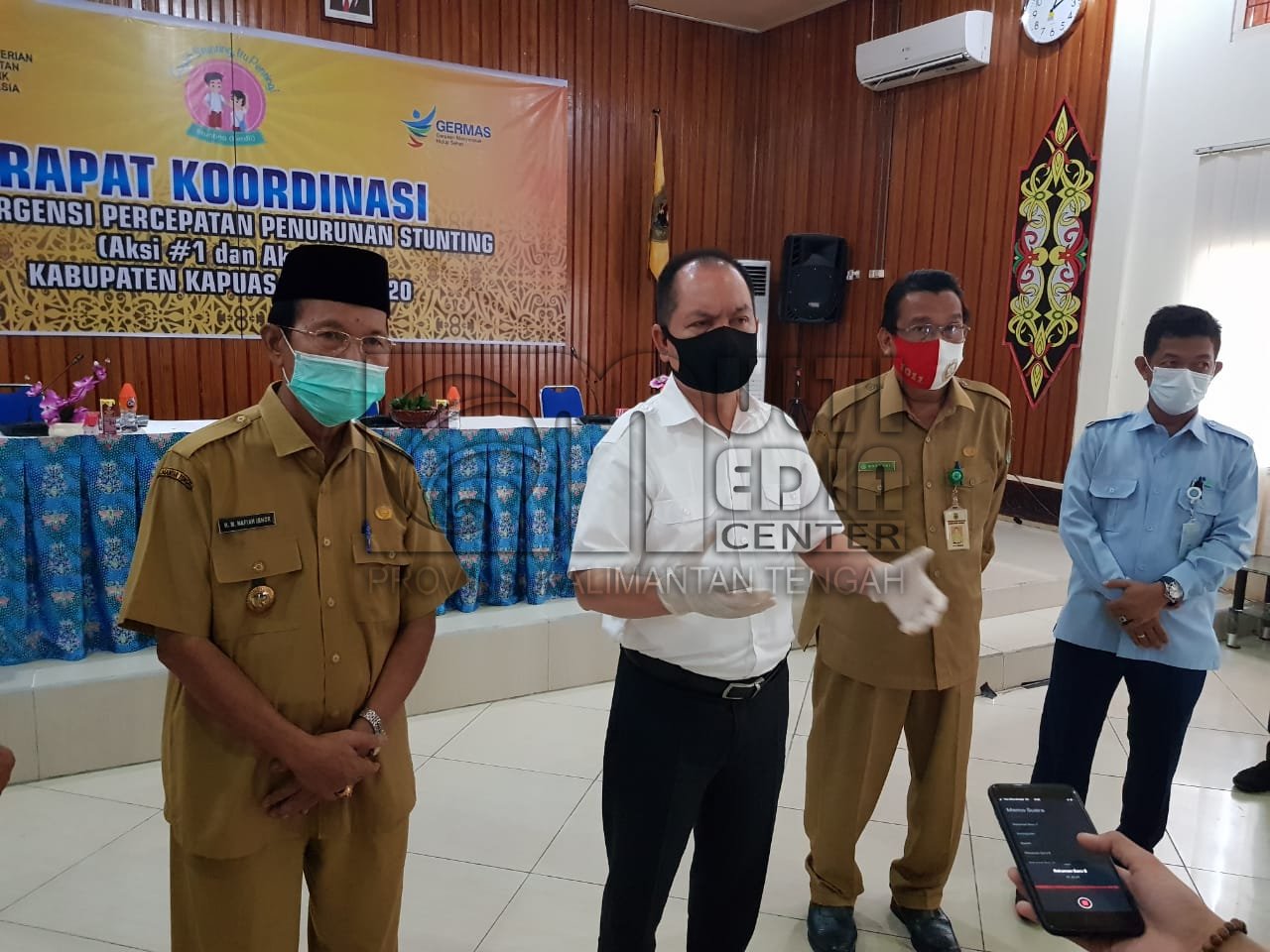 MMCKalteng - Kapuas – Bupati Kapuas Ben Brahim S. Bahat didampingi oleh Wakil Bupati Kapuas H M Nafiah Ibnor, Pj Sekda Kabupaten Kapuas H Masrani dan Direktur Perusahaan Daerah Air Minum (PDAM) Kuala Kapuas Agus Cahyono serta Kepala Dinas Komunikasi dan Informatika (Kominfo) Kapuas Dr. H. Junaidi mengumumkan tarif PDAM untuk masyarakat ekonomi menengah ke bawah ditiadakan atau digratiskan. Hal itu disampaikan Bupati Kapuas Ben Brahim S.Bahat usai memimpin rapat Koordinasi di Aula Bappeda Kabupaten Kapuas bersama Kepala SOPD Lingkup Pemerintah Kabupaten Kapuas, Selasa (30/6/2020). Penggratisan ini dimaksudkan agar meringankan beban masyarakat terutama ekonomi menengah ke bawah yang terdampak Covid-19 yang tengah melanda dunia khususnya Kabupaten Kapuas.