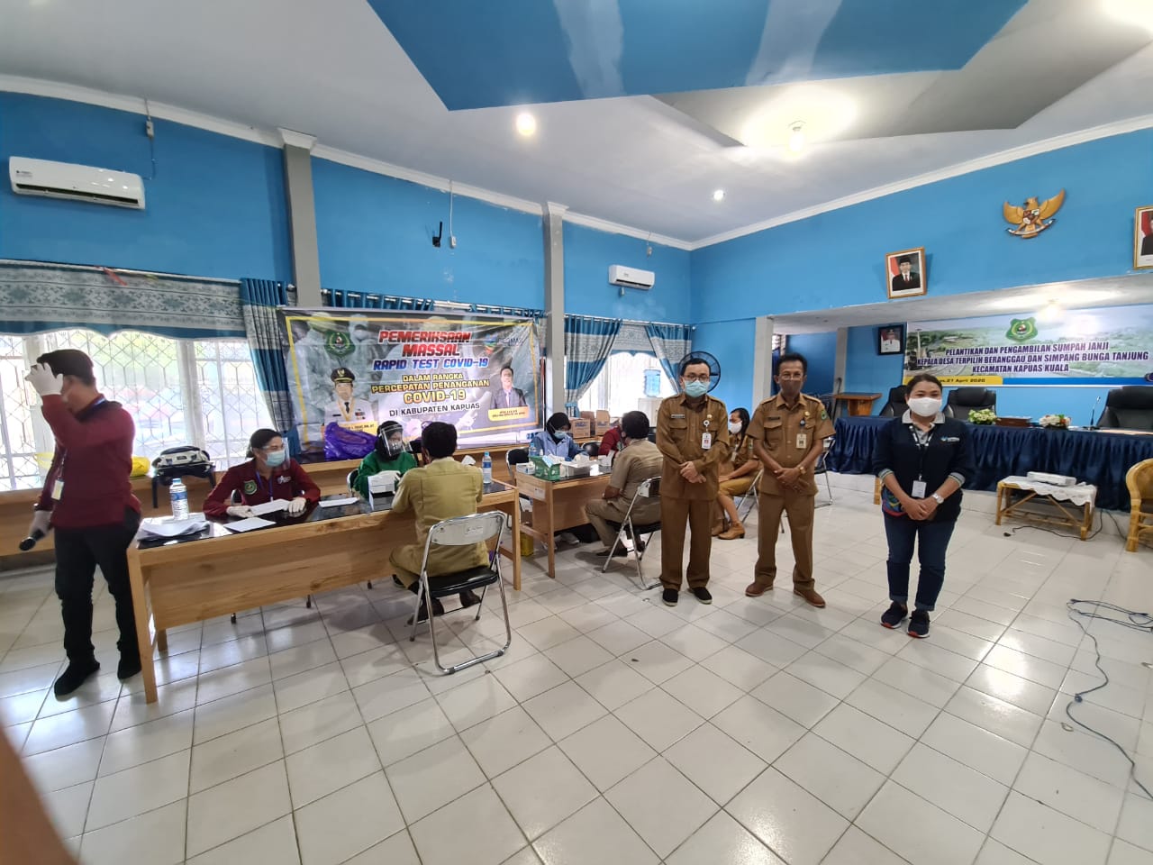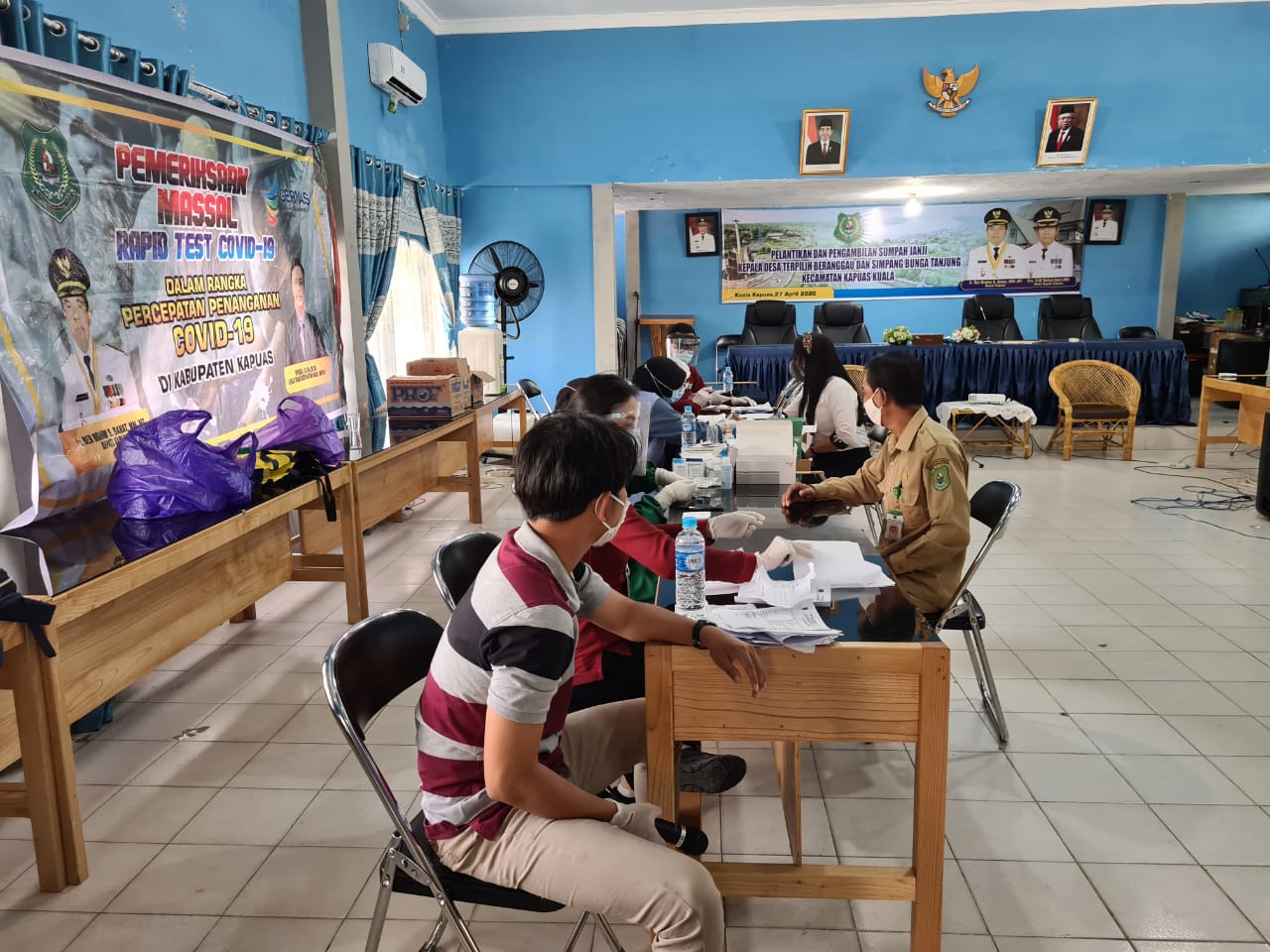 MMCKalteng - Kapuas - Pemerintah Daerah Kabupaten Kapuas melalui Gugus Tugas Covid-19 yang dalam hal ini Dinas Kesehatan (Dinkes) Kabupaten Kapuas telah melaksanakan kegiatan Rapid Test Massal Covid-19, Selasa (14/7/2020 ) bertempat di aula Dinas Pemberdayaan Masyarakat dan Desa (DPMD) Kabupaten Kapuas. Kegiatan tersebut diikuti oleh seluruh pegawai di lingkungan DPMD sebanyak 52 orang dimana hasil rapid test menunjukan semuanya non reaktif.