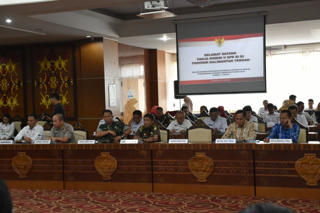 MMC Kalteng – Dalam acara pertemuan panitia kerja komisi II DPR RI dengan Pemprov. Kalteng di aula Eka Hapakat Kantor Gubernur Kalimantan Tengah, Rabu (4/4), perwakilan dari Kapolda menyampaikan paparannya mengenai kesiapan PAM dalam menghadapi Pilkada Serentak Tahun 2018 yang diikuti oleh 11 Kabupaten/Kota. Persiapan yang sudah dilakukan yaitu persiapan pilun, persipan posko, persiapan LATPRAOPS, persiapan kondisi KAMTIBMAS, persiapan masyarakat, persiapan kuat pers, persiapan sarana dan prasarana, serta persiapan anggaran.