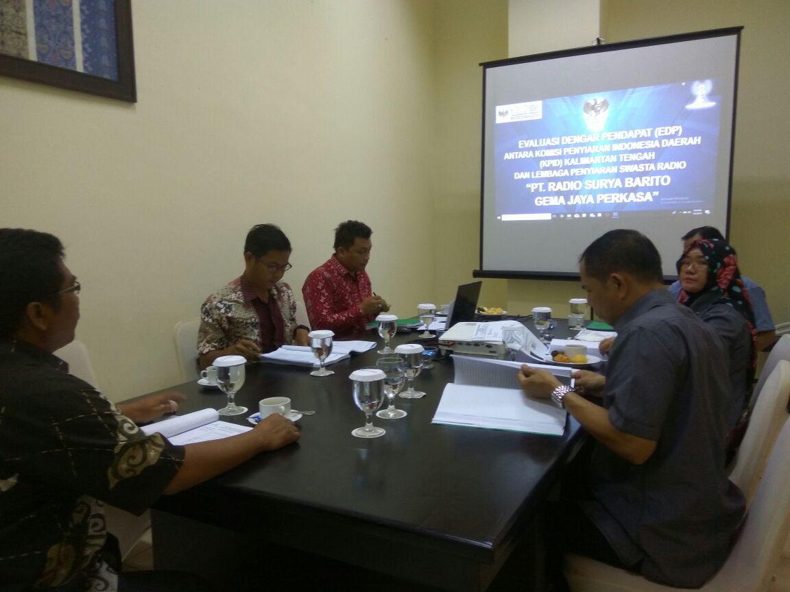 MMCKalteng- Komisi Penyiaran Indonesia Daerah Kalimantan Tengah (KPID) menggelar Evaluasi Dengar Pendapat (EDP) antara Lembaga Penyiaran Swasta (LPS )“PT. RADIO SURYA BARITO GEMA JAYA PERKASA”, Tamiang Layang Kabupaten barito Timur yang dilaksanakan di ruang meetingrooms Hotel Luwansa, Kota Palangka Raya, Rabu (9/5).