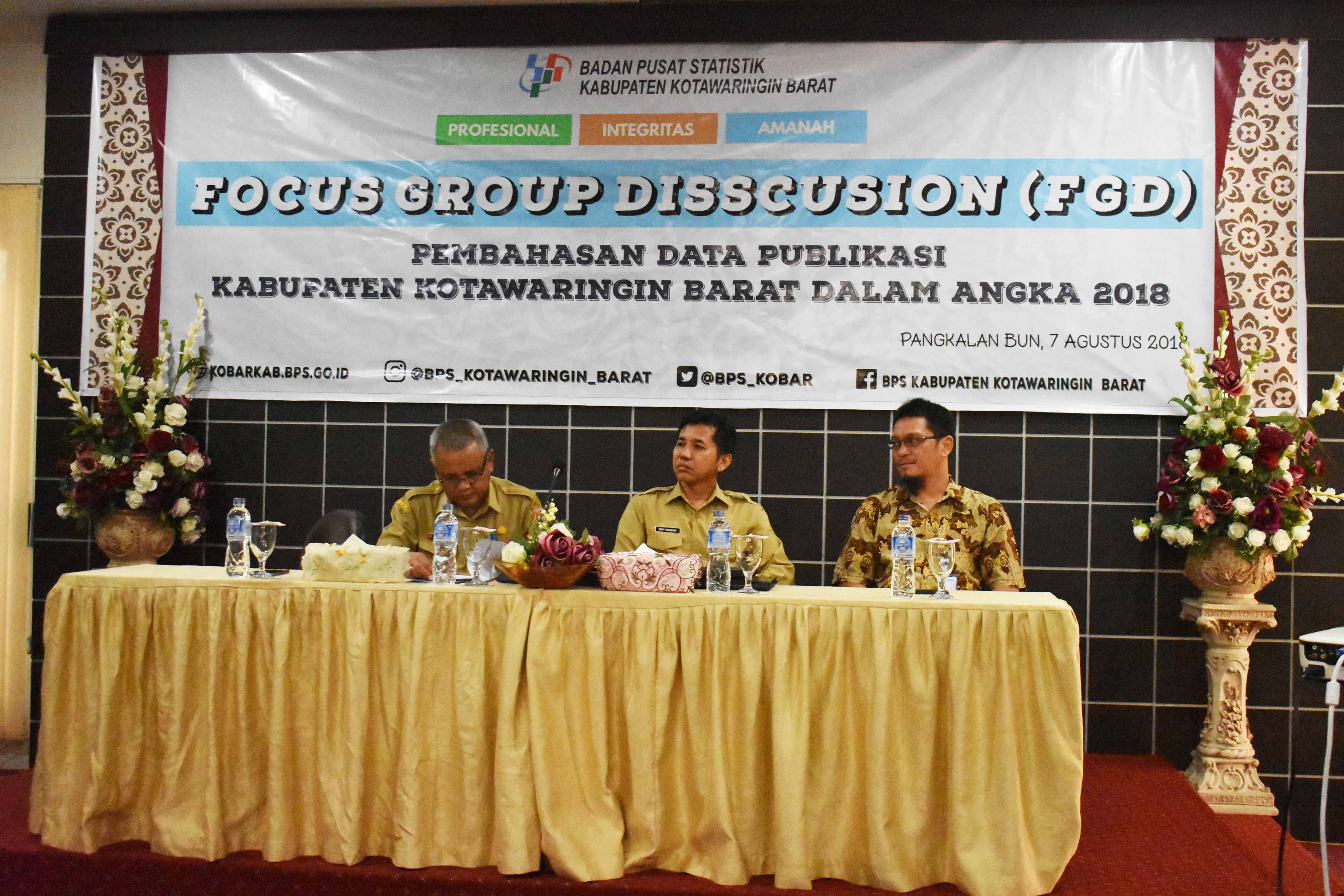 MMC Kalteng - Forum Group Discussion (FGD) penyusunan Kabupaten Kotawaringin Barat (Kobar) dalam angka untuk menghasilkan data statistik yang berkualitas digelar Badan Pusat Statistik (BPS) Kobar di Hotel Avilla Pangkalan Bun, Selasa (7/8). FGD tersebut dihadiri oleh Kepala BPS Kobar Oo Suharto, Kepala Dinas Komunikasi, Informatika, Statistik dan Persandian (Kominfo) Kobar Rody Iskandar, sekaligus sebagai pembicara, serta perwakilan dari sejumlah SOPD, instansi vertikal, BUMN/BUMD.