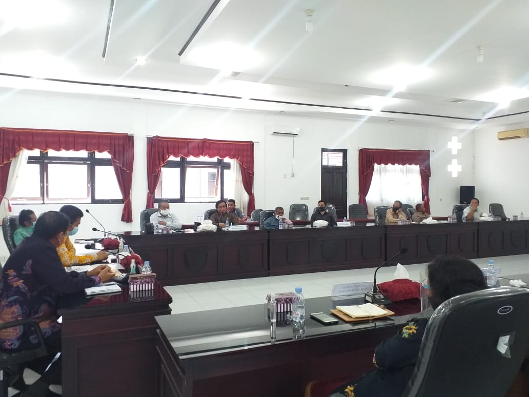 MMCKalteng - Gunung Mas - Dewan Perwakilan Rakyat Daerah ( DPRD ) Kabupaten Gunung Mas ( Gumas ) menyambut 8 orang Panitia Khusus ( Pansus ) Rencana Pengembangan Industri Kabupaten (RPIK) DPRD Kota Banjarbaru, Provinsi Kalimantan Selatan yang berkunjung ke DPRD Gunung Mas, Kamis (23/7/2020). Kedatangan rombongan Pansus RPIK DPRD Kota Banjarbaru, Provinsi Kalimantan Selatan disambut langsung Wakil Ketua DPRD Gunung Mas, Binartha bersama anggotanya Rayaniatie, Sekda Gunung Mas, Yansiterson dan jajaran SOPD terkait.