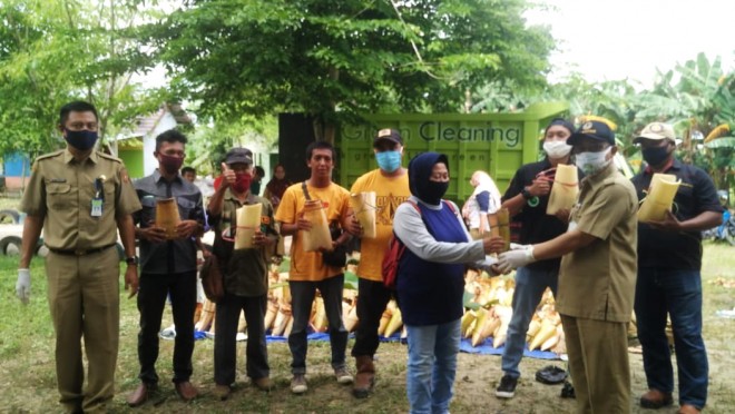 MMCKalteng - Kotawaringin Barat - Dinas Lingkungan Hidup (DLH) Kabupaten Kotawaringin Barat (Kobar) pada Senin (3/8/2020) menyerahkan daging kurban kepada Petugas Kebersihan (Pasukan Kuning) dan Petugas Ruang Terbuka Hijau (Pasukan Hijau). Penyerahan daging kurban tersebut dilaksanakan di Tempat Pemrosesan Akhir (TPA) Translik, Desa Pasir Panjang, Kecamatan Arut Selatan.