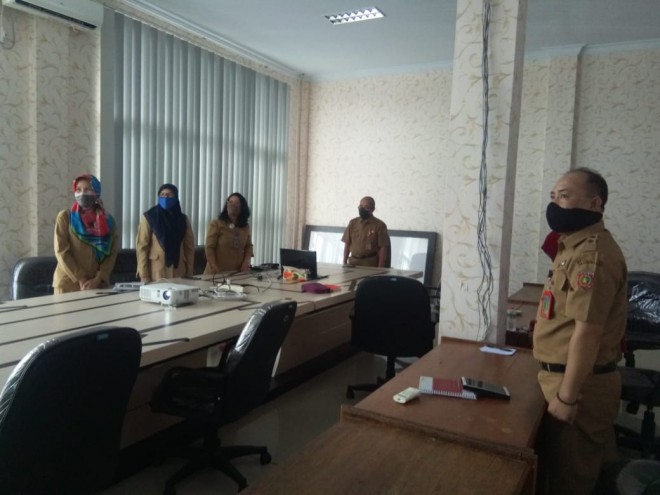 MMCKalteng - Kotawaringin Barat - Kepala Dinas Penanaman Modal dan Pelayanan Terpadu Satu Pintu (Dinas PMPTSP) Kabupaten Kotawaringin Barat (Kobar), Encep Hidayat bersama dengan pejabat eselon III dan IV dan perwakilan UMKM mengikuti Sosialisasi Sistem Informasi Pengadaan di Sekolah (SIPLah) secara daring melalui video conference, di Aula kantor Dinas PMTPSP Kobar, Selasa (4/8/2020). Encep menyampaikan bahwa keikutsertaan Dinas PMPTSP pada sosialisasi ini merupakan undangan surat dari Kementerian Pendidikan dan Kebudayaan dengan nomor : 66529/A.A7/TU/2020, tanggal 30 Juli 2020, yang ditujukan kepada Kepala Dinas PMPTSP provinsi dan kabupaten / kota seluruh Indonesia, dimana untuk jadwal Kalimantan Tengah adalah pada hari ini.