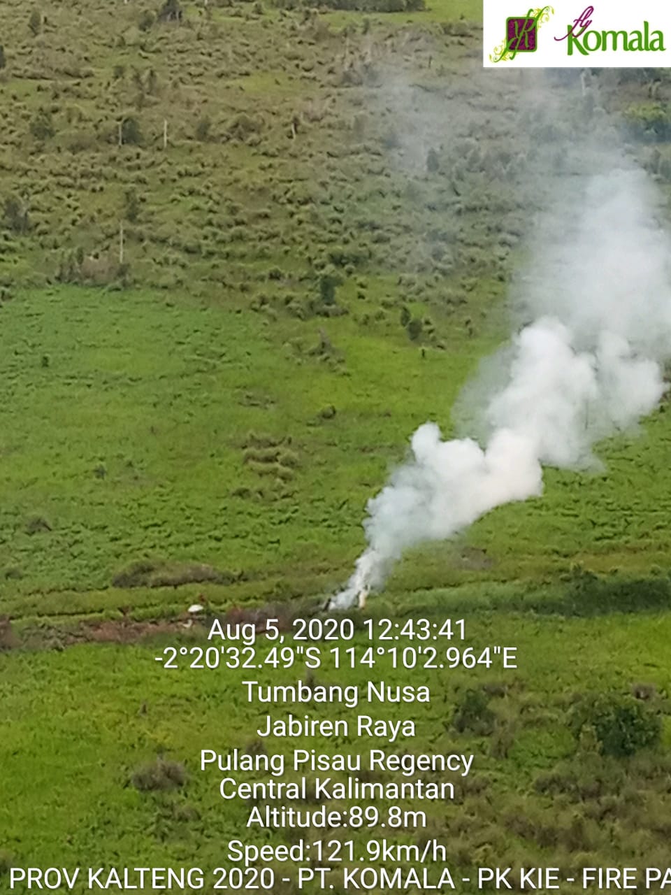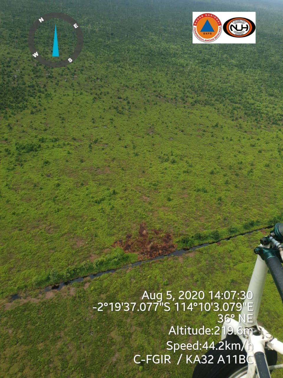Setelah mendapatkan informasi adanya titik firespot Kebakaran Hutan dan Lahan dari Tim Patroli Darat lalu Tim patroli udara pada sorti kedua langsung memantau dengan route Tanjung Taruna- Tumbang Nusa Kabupaten Pulang Pisau dengan hasil patroli adanya terpantau titik firespot. Jauhnya titik lokasi yang terbakar dan tidak adanya akses jalan darat untuk menuju ke lokasi tersebut menjadi pertimbangan untuk dilaksanakannya pemadaman melalui udara dengan water boombing. Atas ijin Wakil Komandan Pos Komando Satuan Tugas Penanganan Darurat Bencana (Satgas PDB) dilaksanakannya water boombing dan berhasil dipadamkan. (Pky.5/8/2020 DewiS Foto/Data:PusdalopsPBKalteng)