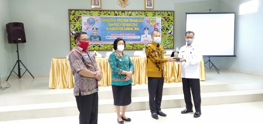 MMCKalteng - Gunung Mas – Badan Narkotika Nasional (BNN) Provinsi Kalimantan Tengah (Kalteng) mengadakan kegiatan Sosialisasi Program Rehabilitas dan Pasca Rehabilitas di Kabupaten Gunung Mas (Gumas) yang bertempat di Aula Hotel Zepanya, Kamis (6/8/2020) lalu. Dalam kegiatan ini peserta dari dinas terkait, lembaga rehabilitas, komponen masyarakat dan pemerintah.