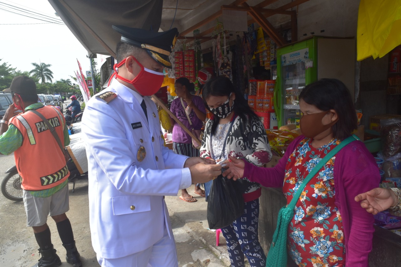 Usai Upacara HUT RI Ke-75 Bupati Bersama Muspida Kabupaten Gunung Mas Bagikan Masker Pada Warga