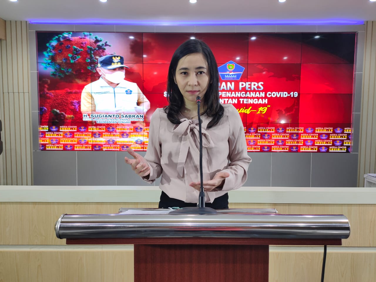 MMCKalteng - Palangka Raya - Gubernur Kalimantan Tengah (Kalteng) H. Sugianto Sabran selaku Ketua Satuan Tugas Percepatan Penanganan Covid-19 Provinsi Kalteng menyampaikan pasien konfirmasi positif Covid-19 di Kalteng bertambah sebanyak 44 orang dengan total kasus mencapai 2.394 orang, pasien dinyatakan sembuh sebanyak 11 orang dan pasien dinyatakan meninggal dunia sebanyak 104 orang atau dengan tingkat kematian Case Fatality Rate (CFR) 4,3 persen. Hal ini disampaikan oleh Ketua Satuan Tugas Percepatan Penanganan Covid-19 Provinsi Kalteng H. Sugianto Sabran melalui tim komunikasi publik Satuan Tugas Percepatan Penanganan Covid-19 Provinsi Kalteng dr. Astrid Teresa, Sp.KK dalam press release yang digelar pada Minggu (23/08/2020) sore, di Gedung Smart Province (GSP) Dinas Komunikasi, Informatika, Persandian dan Statistik Provinsi Kalteng.