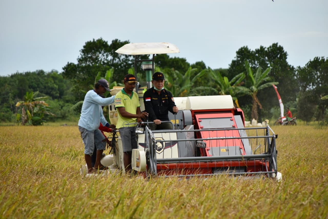 Kelompok tani setempat melakukan panen dengan menggunakan alat Combine Harvester. Alat Combine Harvester yang digunakan untuk mempermudah memanen padi. Dimana yang biasanya bisa memakan waktu hingga 7 hari, dengan alat Combine Harvester hanya membutuhkan waktu 2 jam.