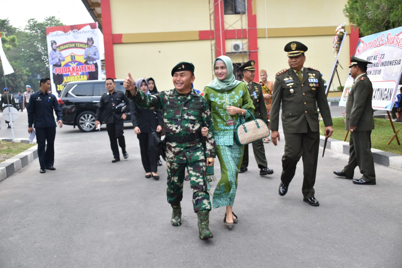 MMCKalteng-Dalam rangka HUT Ke-73 Tentara Nasional Indonesia (TNI), Gubernur Kalimantan Tengah, H. Sugianto Sabran, menjadi Inspektur dalam upacara yang digelar di lapangan Mapolda Kalimantan Tengah, Jumat (5/10). Nampak hadir juga Ketua TP PKK Provinsi Kalimantan Tengah Yulistra Ivo Sugianto Sabran. Tema yang diambil dalam HUT kali ini adalah “Profesionalisme TNI Untuk Rakyat”, yang memiliki arti TNI yang senantiasa meningkatkan profesionalisme melalui berbagai pendidikan, pelatihan, persenjataan, alutsista serta untuk memenuhi kesejahteraan rakyat Indonesia.