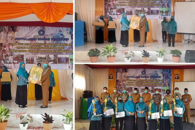 Mempertimbangkan pandemi Covid-19 yang belum usai, penyerahan hadiah dilaksanakan secara sederhana di Aula Desa Pangkalan Dewa pada Senin (12/10/2020). Tampil sebagai juara I Lomba UP2K diraih oleh TP PKK Desa Pangkalan Dewa diikuti oleh TP PKK Desa Arga Mulya dan Desa Medangsari sebagai juara II dan III. Untuk lomba HATINYA PKK juara I diraih oleh TP PKK Desa Sungai Melawen yang disusul oleh TP PKK Desa Kenambui dan Desa Sabuai.