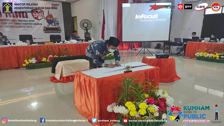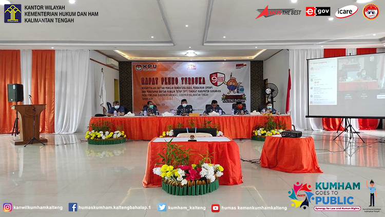 MMCKalteng - Sukamara - Kepala Lembaga Pemasyarakatan Kelas III Sukamara yang dalam hal ini diwakili oleh Kepala Sub Seksi Pembinaan menghadiri Rapat Pleno Terbuka KPU Kabupaten Sukamara dengan agenda membahas tentang Rekapitulasi Daftar Pemilih Sementara Hasil Perbaikan (DPSHP) dan Daftar Pemilih Tetap (DPT) Tingkat Kabupaten Sukamara Pada Pemilihan Gubernur dan Wakil Gubernur Kalimantan Tengah Tahun 2020, Kamis (15/10/2020). Dalam sambutannya sekaligus Rapat Pleno Terbuka, Ketua KPU Ahmad Zen Allantany menyampaikan bahwa mereka berusaha melindungi hak pilih, tidak terkecuali Warga Binaan Pemasyarakatan.