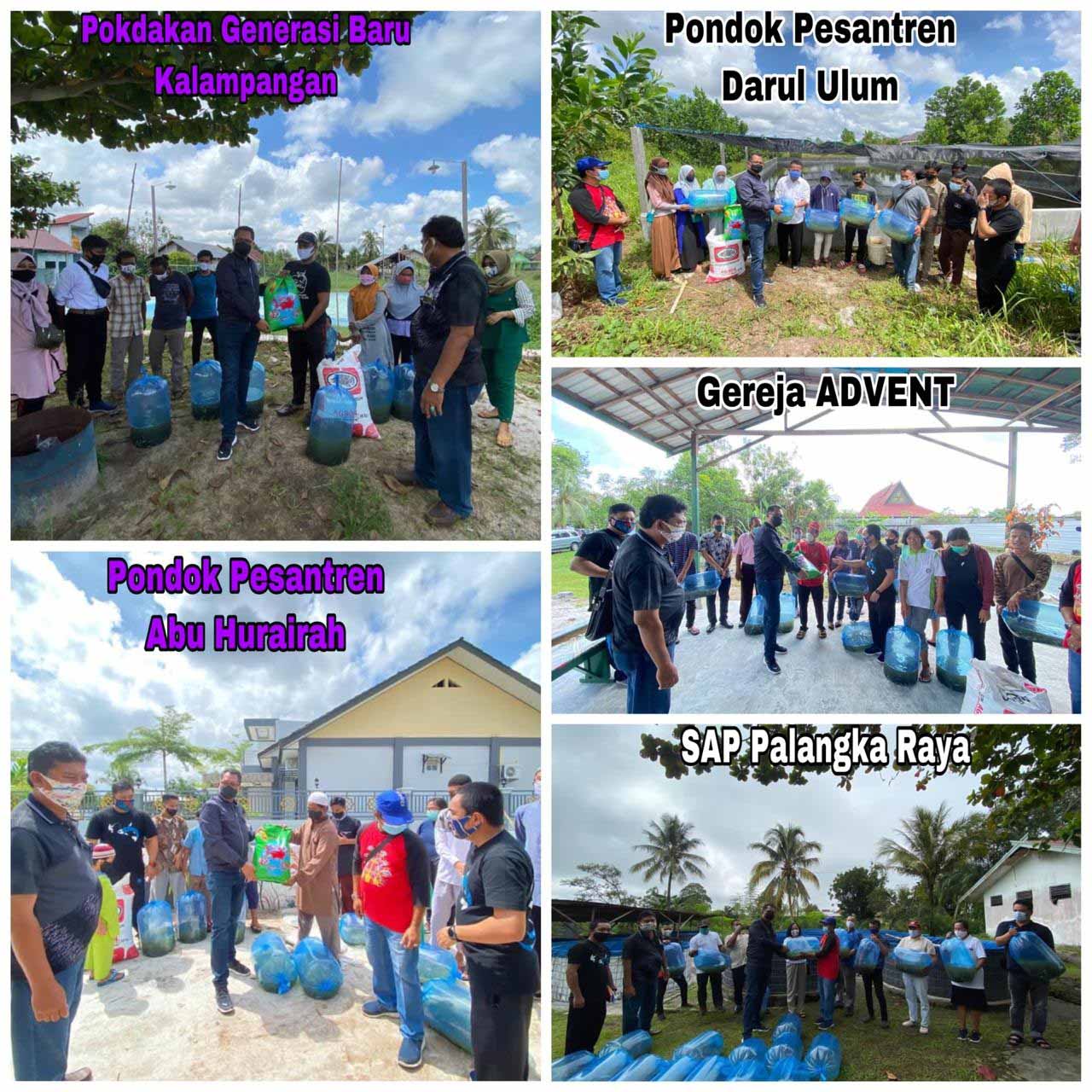 Bantuan benih ikan patin dan pakan diserahkan kepada perwakilan 5 kelompok masyarakat dengan disaksikan oleh para pengurus dan anggotanya pada Jum’at (20/11/2020). Acara penyerahan dilaksanakan untuk Pondok Pesantren Abu Horairah bertempat di jalan Jati Raya II Palangka Raya, Pondok Pesantren Darul Ulum di jalan Dr. Murjani Gang Sari Palangka Raya, Sekolah Alkitab Palangka Raya di Jalan Cilik Riwut Km 19 Palangka Raya dan Kelompok Ternak Generasi Baru jalan Bereng Bengkel Kelurahan Kalampangan serta Gereja Masehi Advent Hari Ketujuh.