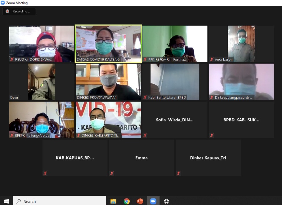 MMCKalteng - Palangka Raya - Dalam rangka evaluasi mingguan penanganan Covid-19 di Provinsi Kalimantan Tengah, Satuan Tugas Penanganan Covid-19 Provinsi Kalimantan Tengah melaksanakan Zoom Meeting. Pertemuan tersebut dihadiri Satgas Covid-19 Kabupaten dan Kota, Kadinkes, Kasat Pol.PP, Dir Rumah Sakit Daerah dan Instansi terkait, Selasa (1/12/2020).