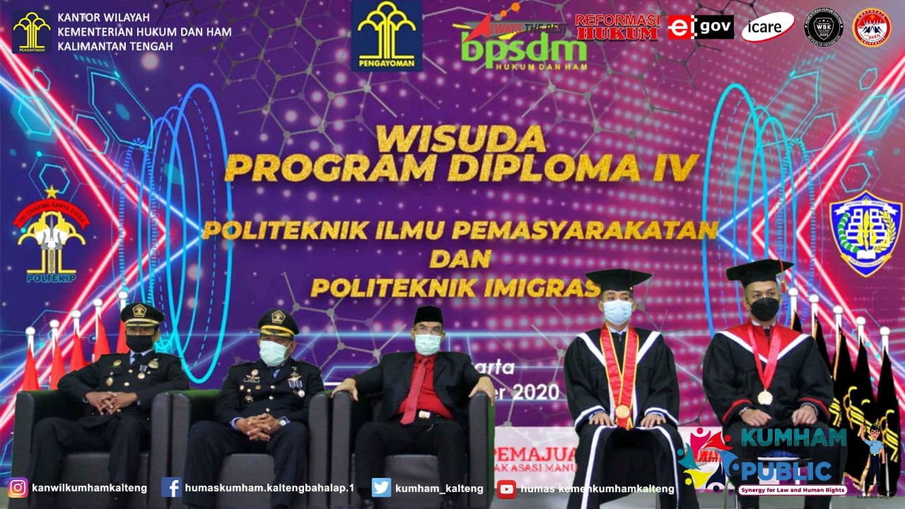 Dua orang Taruna Diploma IV POLTEKIP dan POLTEKIM yang diwisuda pada Kantor Wilayah Kementerian Hukum dan HAM Kalimantan Tengah ini adalah Bahtiyar Mandala Sutra yang lulus dengan IPK dengan pujian (cumlaude) dan Raden Kevin Fabio Winata yang lulus dengan nilai sangat memuaskan. Turut hadir pada kegiatan ini Menteri Hukum dan Hak Asasi Manusia Republik Indonesia Yasonna H. Laoly, Sekretaris Jenderal Kementerian Hukum dan Hak Asasi Manusia RI Bambang Rantam Sariwanto, Kepala Badan Pengembangan Sumber Daya Manusia Hukum dan HAM Asep Kurnia, Direktur Jenderal Pemasyarakatan Reynhard Saut Poltak Silitonga dan Direktur Politeknik Ilmu Pemasyarakatan Rachmayanti.