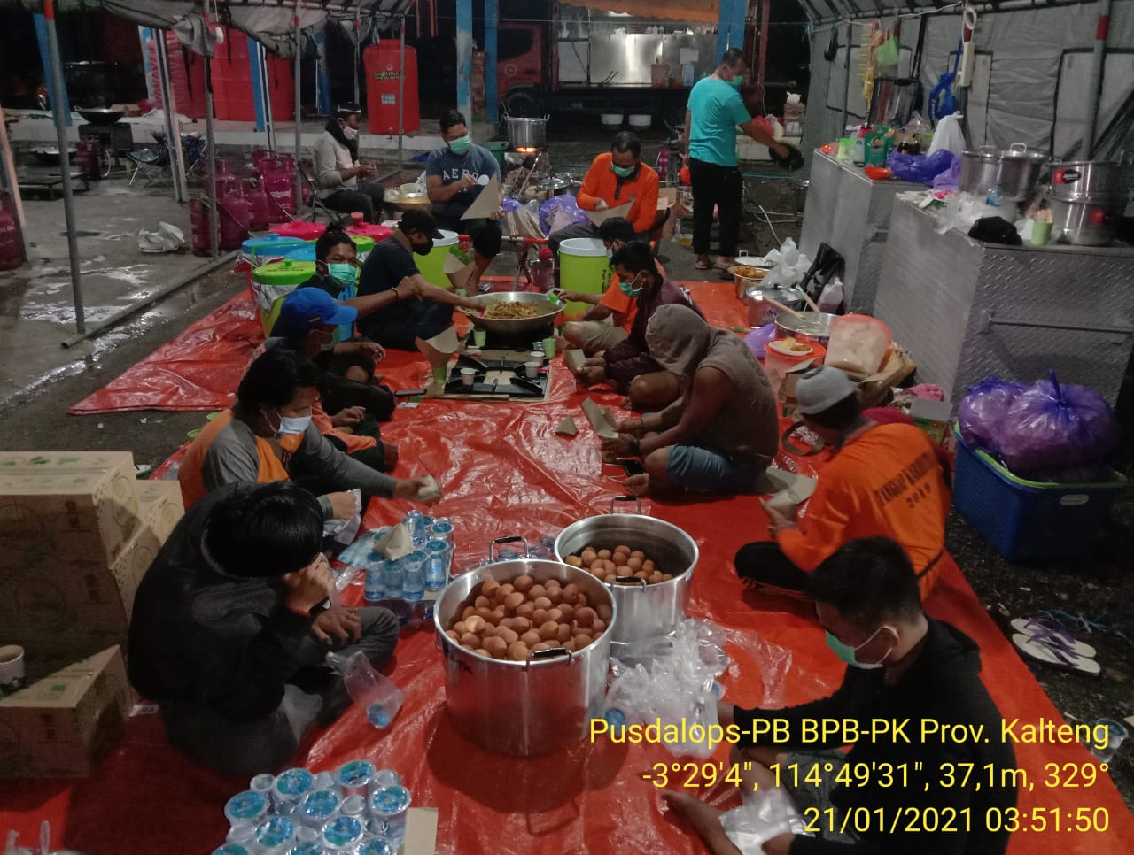 Plt. Kepala Pelaksana BPBPK Provinsi Kalimantan Tengah H.Darliansjah menyampaikan, ”Dukungan Dapur Umum dari Pemprov Kalteng yang dikoordinir oleh BPBPK Prov Kalteng telah menyiapkan untuk makan pagi sebanyak 1.000 bungkus dan untuk makan malam sebanyak 1.000 bungkus,” ucapnya kepada Tim Komunikasi Publik, Kamis (21/1/2021).