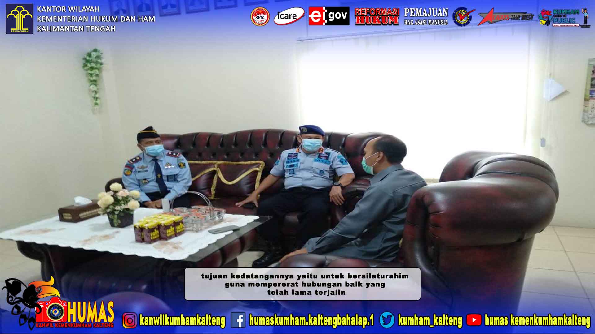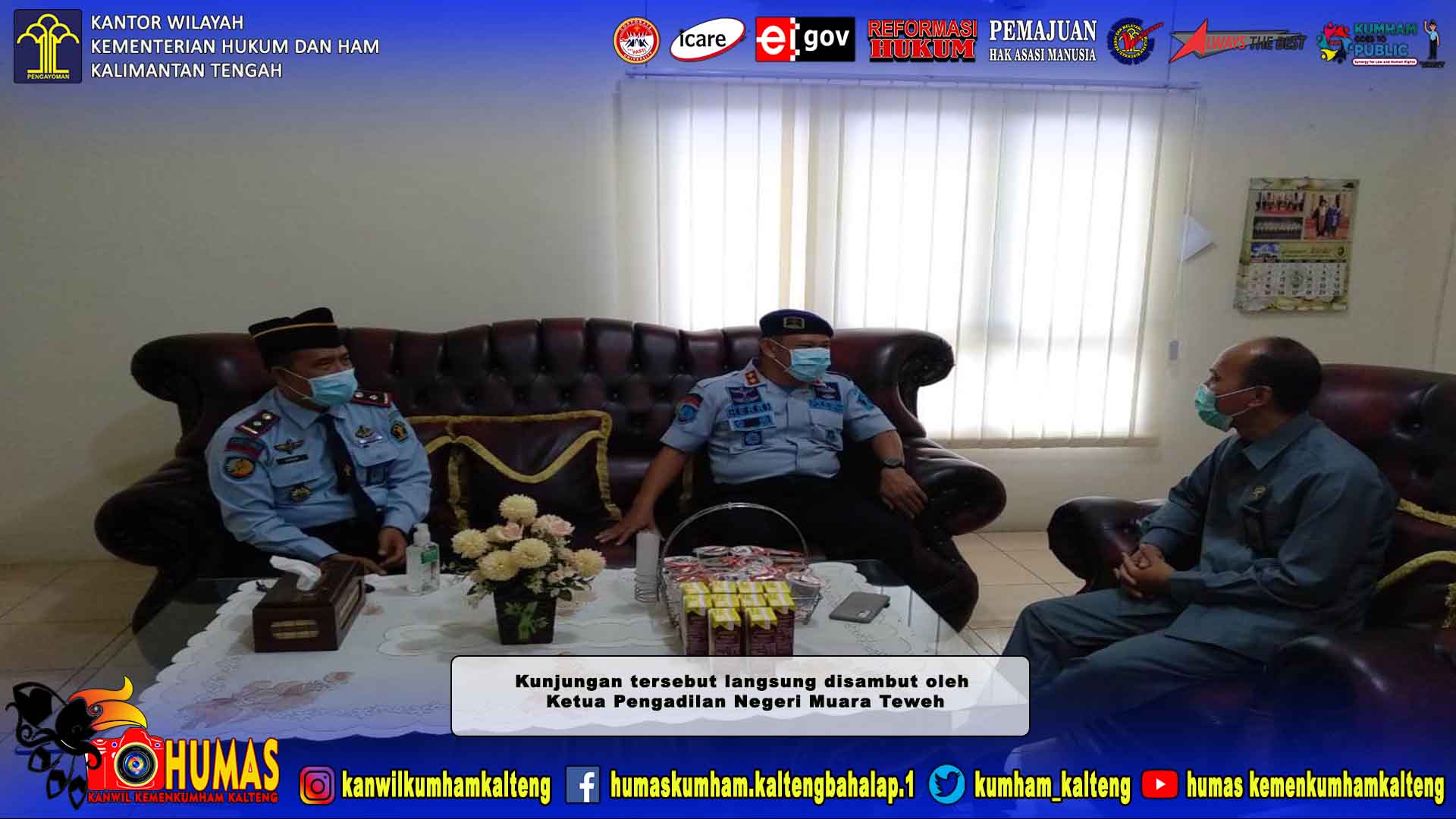 MMCKalteng - Barito Utara - Kepala Lembaga Pemasyarakatan (Kalapas) Kelas IIB Muara Teweh, Akhmad Herriansyah bersama Kepala Balai Pemasyarakatan (Kabapas) Kelas II Muara Teweh, Asmuri berkunjung ke Pengadilan Negeri (PN) Kelas II Muara Teweh. Tujuan utama dari kunjungan tersebut tidak lain adalah untuk memperkuat koordinasi dan juga saling bersinergi yang baik, yang selama ini sudah terjalin baik antara pihak Lapas dan Bapas dengan PN Muara Teweh, Senin (8/2/2021).