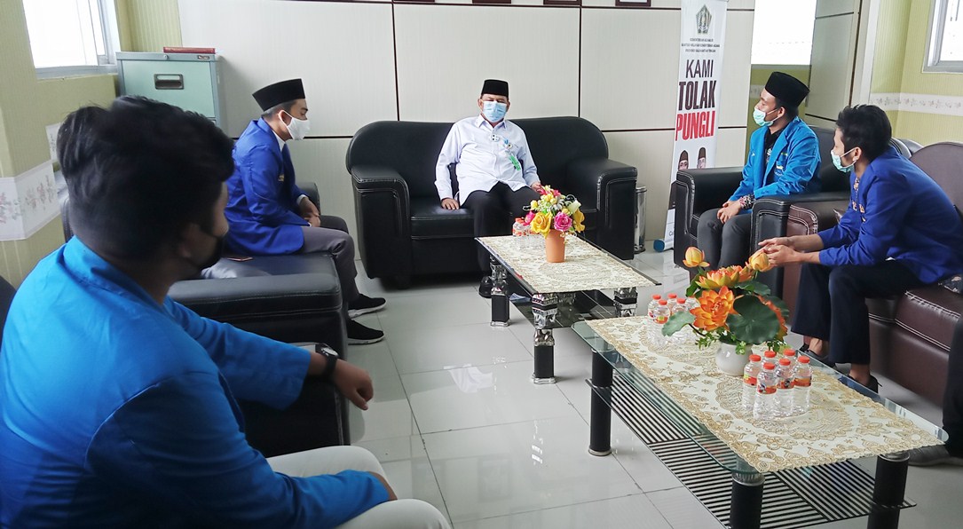 MMCKalteng - Palangka Raya - Sejumlah mahasiswa yang tergabung dalam Pergerakan Mahasiswa Islam Indonesia (PMII) Kalimantan Tengah menemui Kepala Kantor Wilayah Kementerian Agama Provinsi Kalimantan Tengah H. Abd. Rasyid, Rabu (10/2/2021). Kepada para mahasiswa itu, H. Abd. Rasyid menitipkan pesan moderasi beragama.