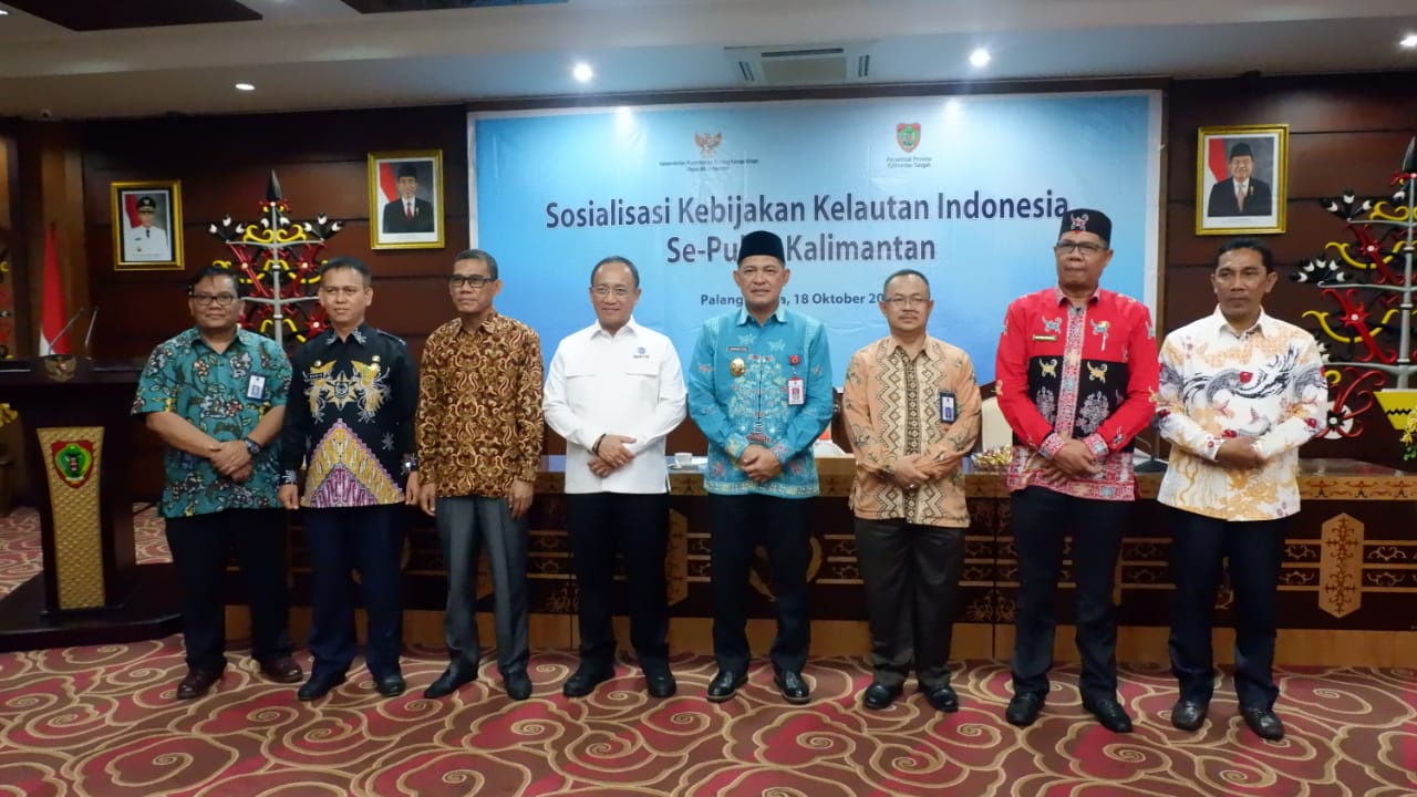MMCKalteng – Pj. Sekretaris Daerah Provinsi Kalimantan Tengah, Fahrizal Fitri, S.Hut, MP, membuka kegiatan Sosialisasi Kebijakan Kelautan Indonesia Se – Pulau Kalimantan mengenai Peraturan Presiden Republik Indonesia Nomor 16 Tahun 2017 tentang Kebijakan Kelautan Indonesia yang digelar di Aula Eka Hapakat, Kamis (18/10). Hadir dalam kegiatan tersebut Sekretaris Kementerian Koordinator Bidang Kemaritiman Republik Indonesia Laksda TNI (Purn) Agus Purwoto, Sekretaris Deputi Bidang Koordinasi Kedaulatan Maritim Dedy Miharja dan Kepala Biro Perencanaan Kemenko Maritim Suparman.