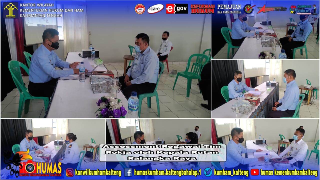 Kegiatan dilanjutkan dengan asesmen terhadap para pegawai Rutan Palangka Raya. Dalam asesmen tersebut dibentuk tim pokja yang nanti akan dibagi dalam beberapa tim yaitu Manejemen Perubahan, Penata Laksana, Penataan Sistem Manajemen SDM, Penguatan Akuntabilitas Kinerja, Penguatan Pengawasan, dan Peningkatan Kualitas Pelayanan Publik dengan target yaitu meraih satker yang berpredikat WBK/WBBM.