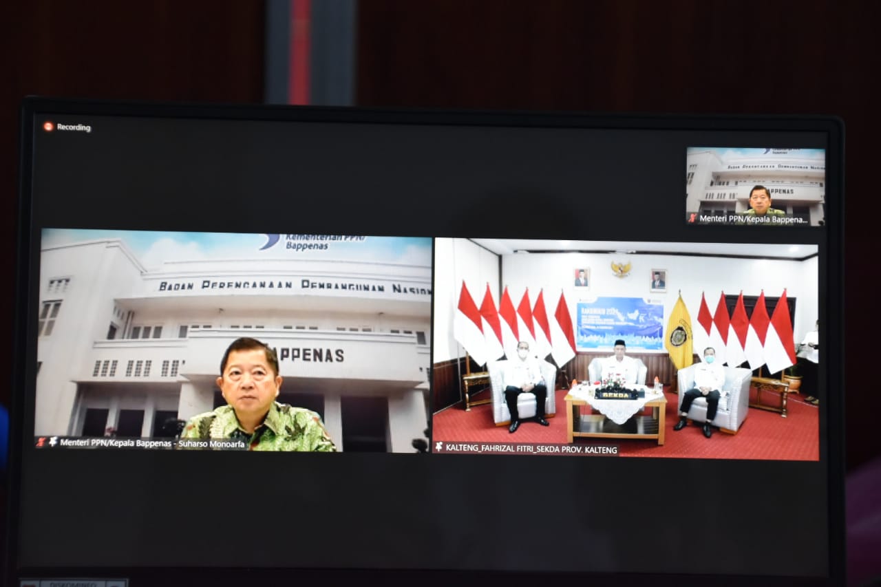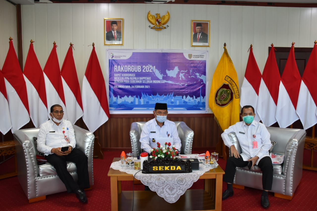 MMCKalteng – Palangka Raya – Sekretaris Daerah Provinsi Kalimantan Tengah (Prov. Kalteng) Fahrizal Fitri mewakili Gubernur Kalteng H. Sugianto Sabran menghadiri Rapat Koordinasi Menteri PPN/ Kepala Bappenas dengan para Gubernur. Rapat koordinasi diikuti Sekretaris Daerah Prov. Kalteng secara virtual melalui video conference dari Ruang Rapat Bajakah, Kantor Gubernur Kalteng, Rabu (24/02/2021).