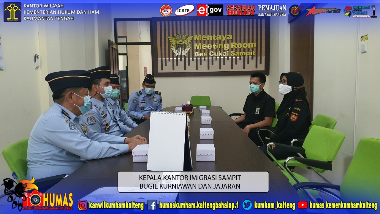 MMCKalteng - Kotawaringin Timur - Kepala Kantor Imigrasi Sampit beserta jajaran bertolak menuju Kantor Bea Cukai Sampit (KPPBC TMP C Sampit) yang berada tepat di seberang Kantor Imigrasi Kelas II TPI Sampit. Ini merupakan pertemuan pertama kali Kepala Kantor Imigrasi Bugie Kurniawan dan Kepala Kantor Bea Cukai Sampit, Indasah, Kamis (25/2/2021).