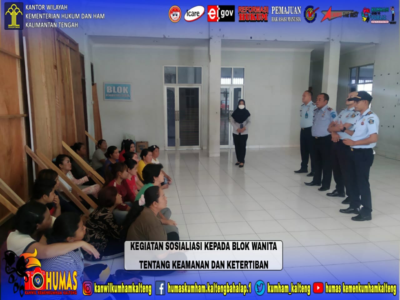 MMCKalteng – Katingan - Warga Binaan Pemasyarakatan (WBP) Wanita Lembaga Pemasyarakatan Narkotika Kelas IIA (LPN) Kasongan dikumpulkan di aula Poliklinik untuk mendapatkan sosialisasi terkait Keamanan dan Ketertiban (Kamtib) di LPN Kasongan, Senin (1/3/2021). Kepala Kesatuan Pengamanan Lembaga Pemasyarakatan (Ka.KPLP), Suwono ditemani oleh Kepala Seksi (Kasi) Administrasi Kamtib, Jauhar Arifin, Kasi Bimbingan Narapidana dan Anak Didik (Binadik), Agus Ardiyanto, Kepala Sub Seksi (Kasubsi) Registrasi, Hadiyanto Prabowo dan Petugas Blok Wanita memberikan arahan sekaligus sosialisasi kepada WBP Wanita.