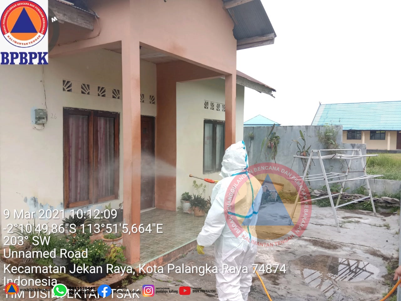 MMCKalteng - Palangka Raya – Tim relawan yang tergabung dalam Satuan Tugas (Satgas) Penanganan Covid-19 Provinsi Kalimantan Tengah (Prov. Kalteng) melaksanakan penyemprotan disinfektan di lingkungan perumahan warga di Jalan Danau Prupuk, Jalan Lele IV, Jalan Manjuhan I, Jalan Badak III, Jalan Paus dan Jalan Mahir Mahar Perumahan ASRI Kelurahan Bukit Tunggal Kota Palangka Raya, Selasa (9/3/2021). Ketua Pelaksana Harian Satgas Penanganan Covid-19 Prov. Kalteng melalui Kepala Bidang Relawan dan Perubahan Perilaku, Kibue A.Md.Kep, S.Sos, M.AP mengatakan, tim relawan yang tergabung di Satgas Penanganan Covid-19 Prov. Kalteng melakukan penyemprotan disinfektan sebagai upaya pencegahan dalam mengurangi penyebaran Covid-19.