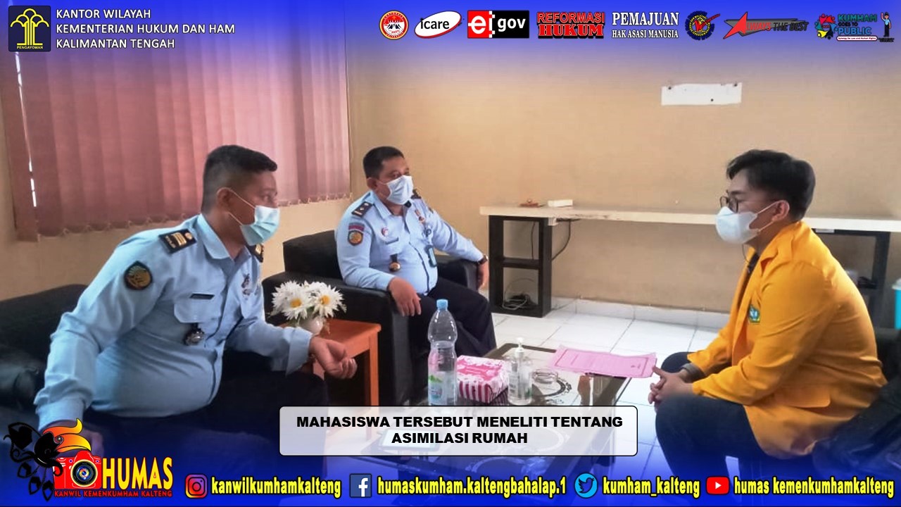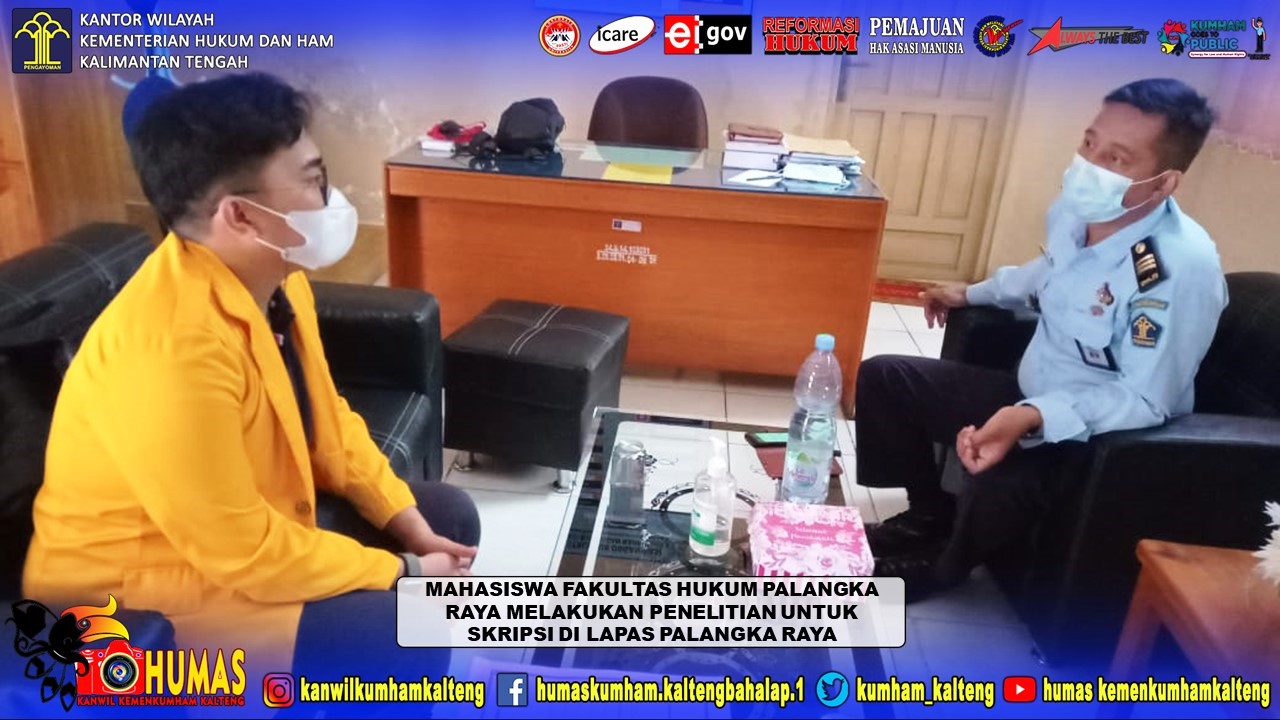 MMCKalteng - Palangka Raya - Satu orang Mahasiswa Fakultas Hukum Universitas Palangka Raya, Ronny Belansky melakukan wawancara sebagai bahan penelitian di Lembaga Pemasyarakatan (Lapas) Kelas IIA Palangka Raya, Selasa (16/3/2021). Penelitian yang digunakan untuk bahan Skripsi ini dimaksudkan untuk memenuhi salah satu syarat dalam menyelesaikan studi di Fakultas Hukum Universitas Palangka Raya.