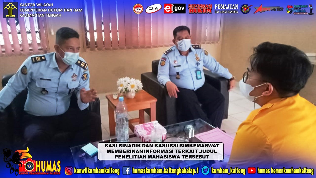 Selanjutnya, Kasi Binadik, Tigor Immanuel Hutabalian, menyambut baik kedatangan Mahasiswa ini dan memberikan informasi terkait penelitiannya. (Red-dok, Humas Kalteng, Maret 2021).