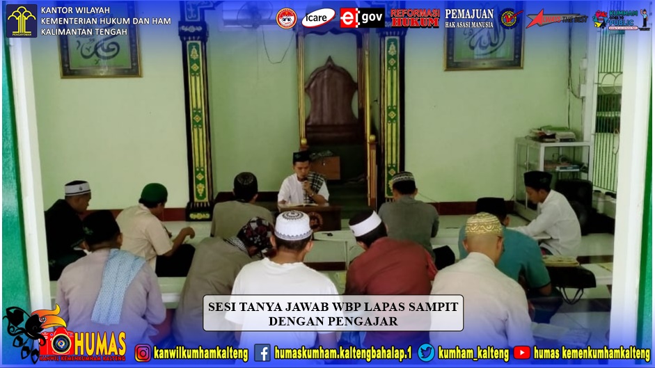 MMCKalteng - Kotawaringin Timur - Kegiatan pembelajaran agama Islam semakin ditingkatkan di Lembaga Pemasyarakatan Kelas IIB Sampit, hal ini bertujuan sebagai pembinaan kepribadian dan kerohanian yang diprogramkan jajaran pembinaan di Lapas Sampit. Sampai dengan saat ini para Warga binaan Pemasyarakatan (WBP) yang beragama Islam mempelajari dan memperdalam Kitab Fiqih di Masjid At-Taubah Lapas, Kamis (25/3/2021).