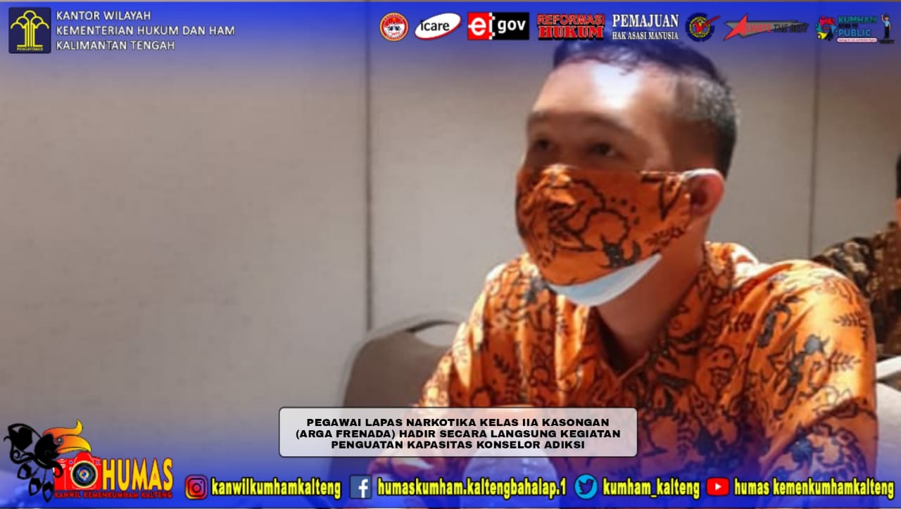 MMCKalteng - Katingan - Kepala Sub Seksi Bimbingan Kemasyarakatan dan Perawatan (Bimkemaswat) Lapas Narkotika Kelas IIA Kasongan yang diwakili oleh Arga Frenada mengikuti kegiatan Penguatan Kapasitas Konselor Adiksi Pada Layanan Rehabilitasi Pemasyarakatan secara langsung di Jakarta bertempat di Hotel Grand Mercure Harmoni, Rabu (24/3/2021). Kegiatan ini sehubungan dengan Surat Keputusan Direktur Jenderal Pemasyarakatan Nomor PAS-1395.PK.01.06.04 Tanggal 14 Desember Tentang Penetapan UPT Pemasyarakatan Penyelenggara Layanan Rehabilitasi Pemasyarakatan bagi Tahanan dan Warga Binaan Pemasyarakatan Pecandu, Penyalahguna dan Korban Penyalahgunaan Narkotika.