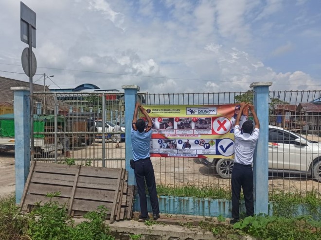 Demi Terciptanya Keselamatan Berkendara, Dishub Kobar Pasang Spanduk Sosialisasi Tertib Lalu Lintas