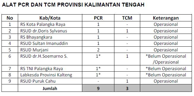 Ketersediaan Alat PCR dan TMC Provinsi Kalimantan Tengah