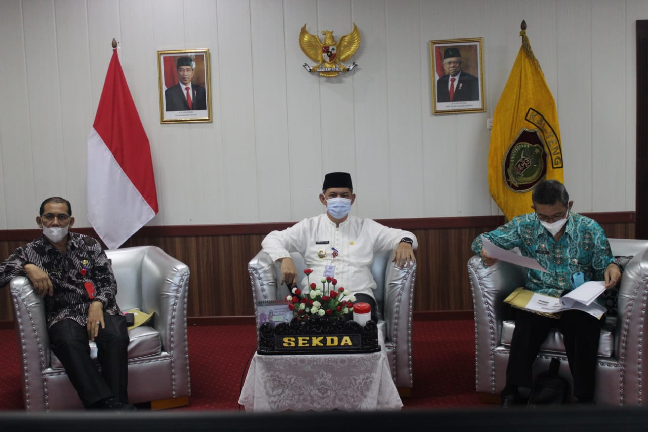 MMCKalteng – Palangka Raya – Sekretaris Daerah Provinsi Kalimantan Tengah (Prov. Kalteng) Fahrizal Fitri mewakili Gubernur Kalteng H. Sugianto Sabran menghadiri Rapat Analisa dan Evaluasi Perkembangan Penegasan Batas Daerah bersama Direktorat Topomini dan Batas Daerah, Kementerian Dalam Negeri (Kemendagri). Rapat ini dihadiri Sekretaris Daerah Prov. Kalteng secara virtual melalui video conference dari Ruang Rapat Bajakah, Kantor Gubernur Kalteng, Jumat (07/5/2021).