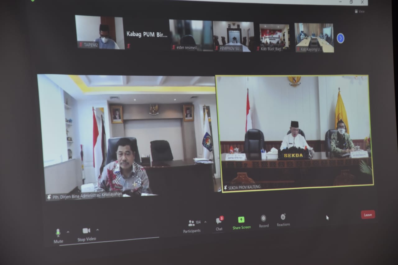 MMCKalteng – Palangka Raya – Sekretaris Daerah Provinsi Kalimantan Tengah (Prov. Kalteng) Fahrizal Fitri menghadiri Rapat Analisa dan Evaluasi Perkembangan Penegasan Batas Daerah Tahap Ketiga. Rapat dihadiri Sekretaris Daerah Prov. Kalteng secara virtual melalui video conference dari Ruang Rapat Bajakah Utama, Kantor Gubernur Kalteng, Jumat (28/5/2021).