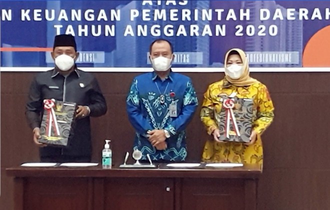 MMCKalteng - Kotawaringin Barat - Pemerintah Kabupaten (Pemkab) Kotawaringin Barat (Kobar) menerima laporan hasil pemeriksaan atas Laporan Keuangan Pemerintah Daerah (LKPD) oleh Badan Pemeriksa Keuangan (BPK) Perwakilan Provinsi Kalimantan Tengah (Kalteng). Dalam penyerahan hasil pemeriksaan yang dilaksanakan pada Jumat (28/5/2021) ini, Pemkab Kobar kembali berhasil meraih opini Wajar Tanpa Pengecualian (WTP).