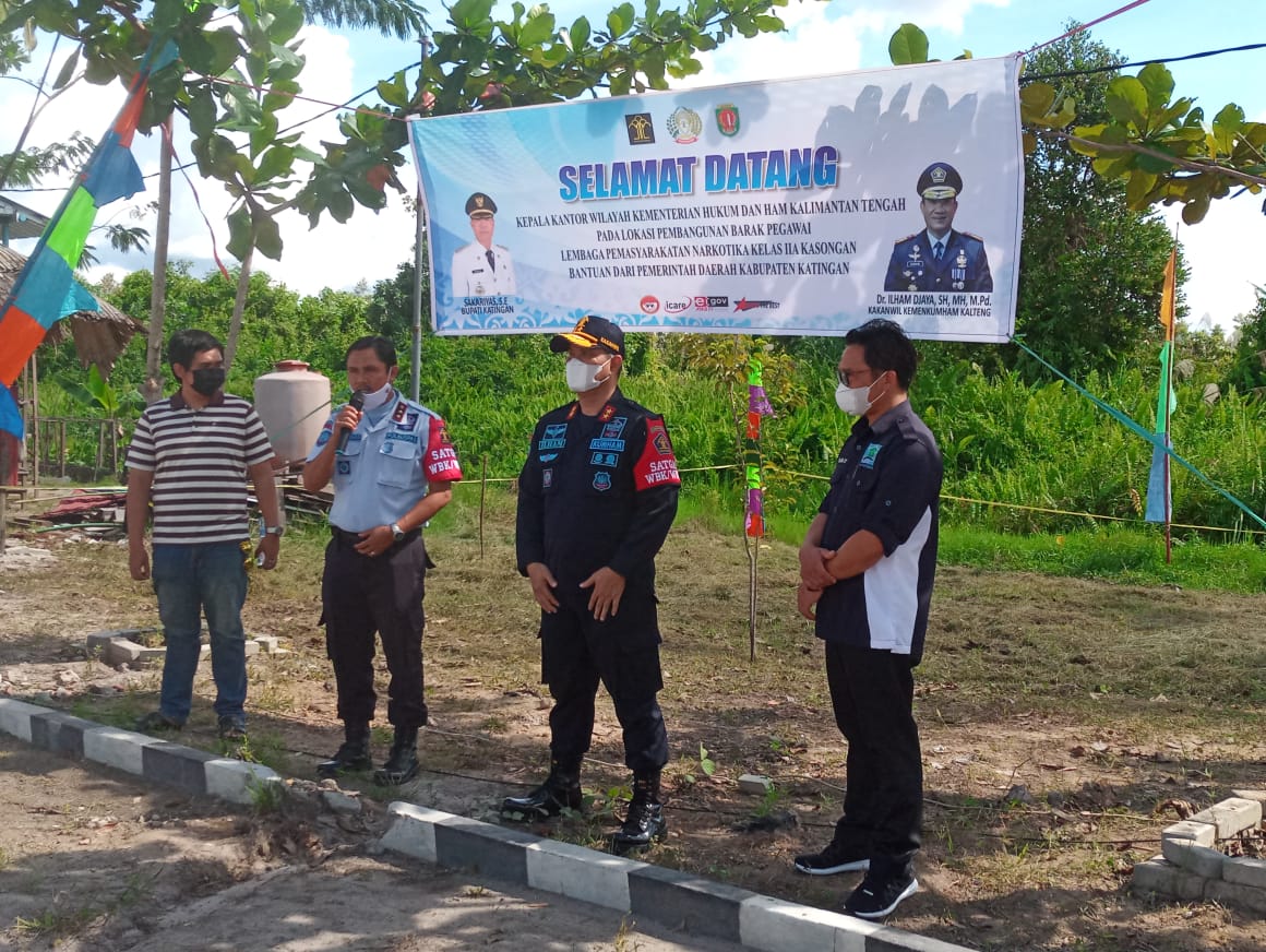 Kegiatan diawali secara simbolis dengan pemasangan patok batas lokasi pembangunan barak pegawai yang dilakukan oleh Kakanwil, Ilham Djaya, Kalapas Narkotika Kasongan, Ahmad Hardi dan Perwakilan dari Dinas Perkimtan Kabupaten Katingan. Setelah dilakukannya pemasangan patok batas lokasi pembangunan barak pegawai Kakanwil Kementerian Hukum dan HAM Kalimantan Tengah, Ilham Djaya mengucapkan terima kasih atas bantuan yang diberikan pemerintah Kabupaten Katingan kepada Lapas Narkotika Kasongan.