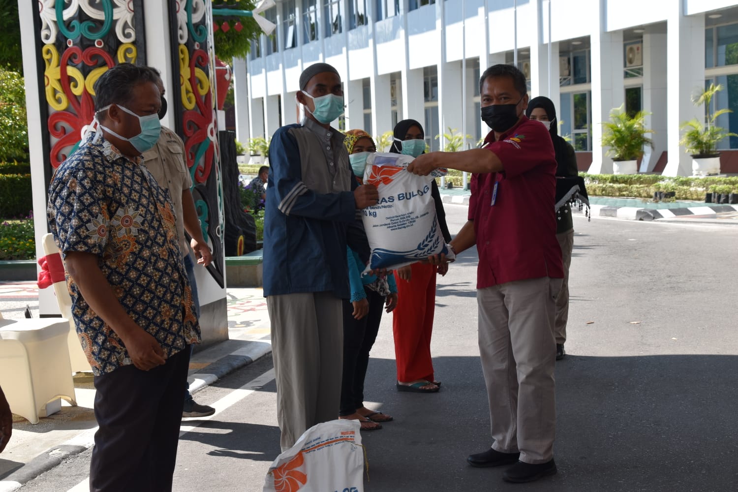 MMCKalteng – Palangka Raya – Pj. Sekretaris Daerah Prov. Kalteng H. Nuryakin meluncurkan program Bantuan Sosial Beras dan Bantuan Sosial Tunai bagi Keluarga Penerima Manfaat (KPM) seperti Program Keluarga Harapan (PKH) dan Bantuan Sosial Tunai (BST), bertempat di Lobby Kantor Gubernur Kalteng, Minggu (25/7/2021). Bansos ini merupakan bantuan dari PT Pos dan Perum BULOG Divisi Regional Kalteng untuk Penanganan dampak bencana non alam wabah Covid-19 di Prov. Kalteng. Program bantuan ini merupakan bagian dari Program Perlindungan Sosial Masyarakat yang ditujukan kepada masyarakat miskin atau terdampak COVID-19, khususnya bagi yang terdaftar sebagai penerima Program Bantuan Sosial dari Pemerintah Pusat, seperti PKH dan BST.