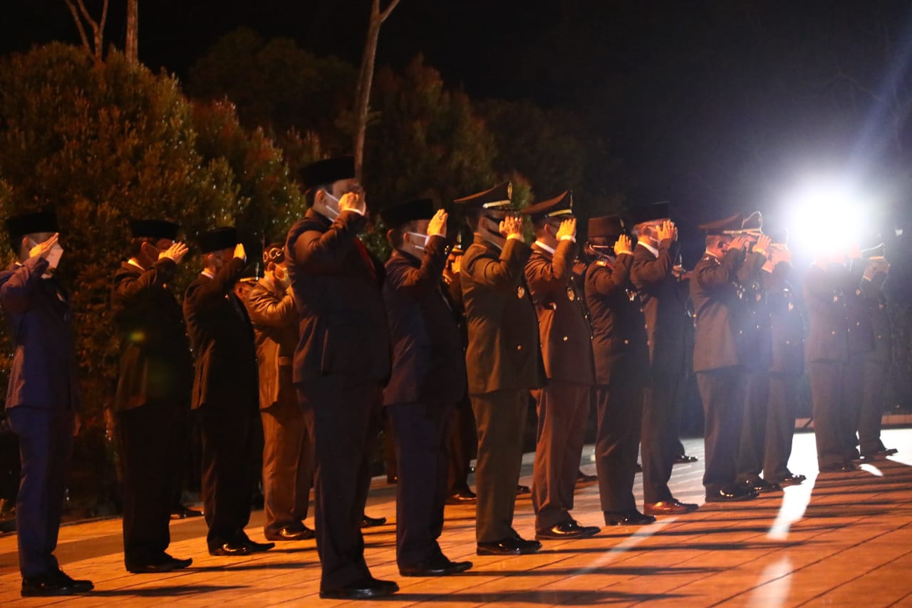 MMCKalteng - Palangka Raya – Wakil Gubernur Kalteng H. Edy Pratowo hadiri Apel Kehormatan dan Renungan Suci. Apel ini digelar di Taman Makam Pahlawan Sanaman Lampang tepat pada pukul 24.00 WIB, Senin (16/8/2021).