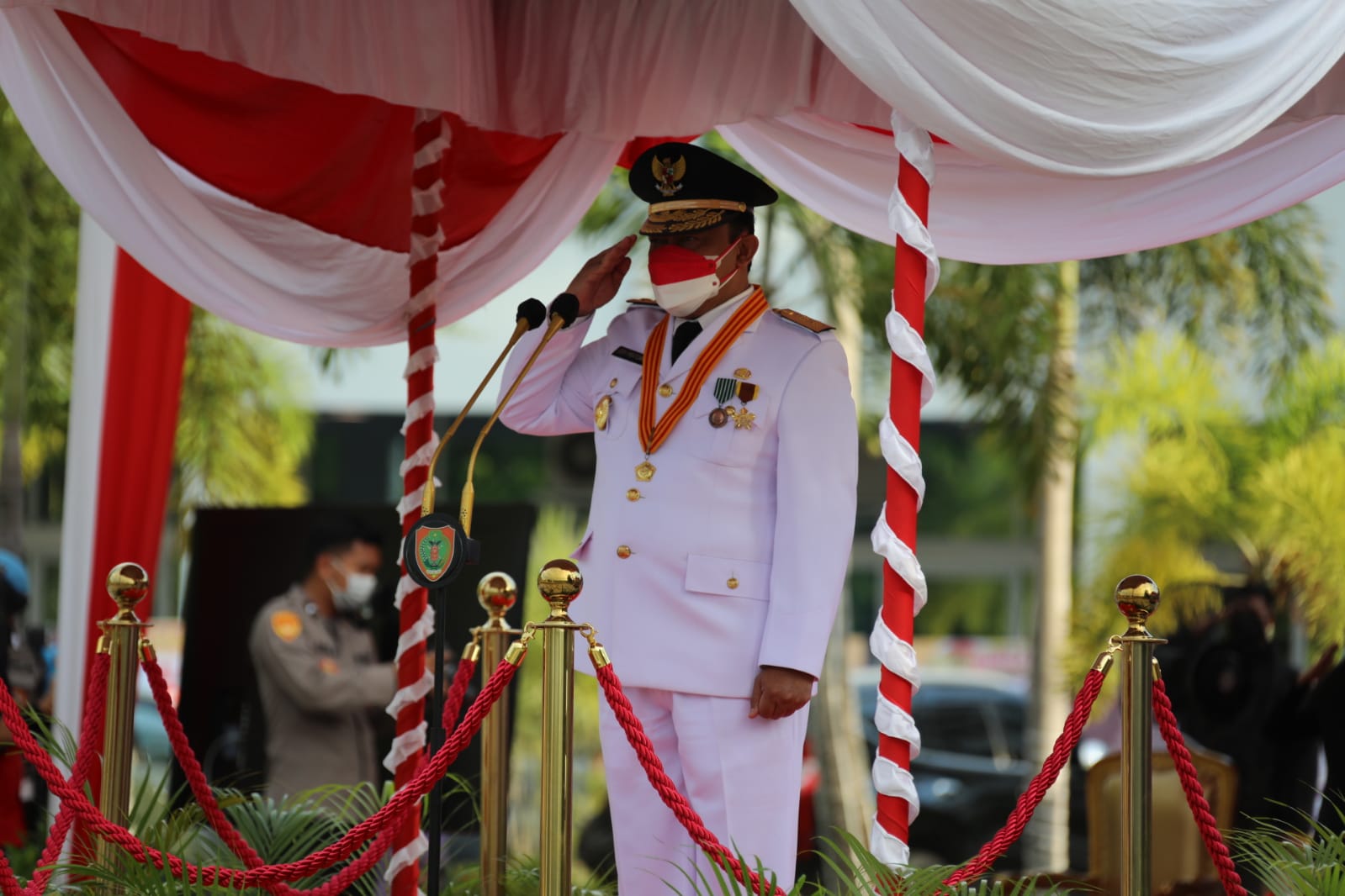MMCKalteng - Palangka Raya – Wakil Gubernur Kalteng H. Edy Pratowo menjadi Inspektur dalam Upacara Penurunan Bendera Merah Putih di Halaman Kantor Gubernur Kalteng, Selasa (17/08/2021).