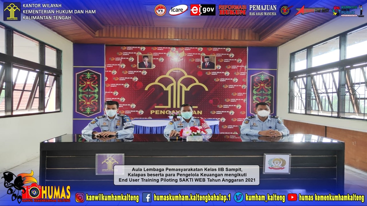 MMCKalteng - Kotawaringin Timur - Bertempat di Aula Lembaga Pemasyarakatan Kelas IIB Sampit, Kalapas beserta para Pengelola Keuangan mengikuti End User Training Piloting SAKTI WEB Tahun Anggaran 2021 yang bekerja sama dengan Kantor Pelayanan Perbendaharaan Negara (KPPN) Sampit, Senin (23/8/2021). Dalam sambutannya, Kepala KPPN Sampit, Abas Ashar mengatakan bahwa Aplikasi Keuangan Tingkat Instansi (SAKTI) adalah aplikasi yang digunakan sebagai sarana bagi satuan kerja dalam mendukung implementasi .