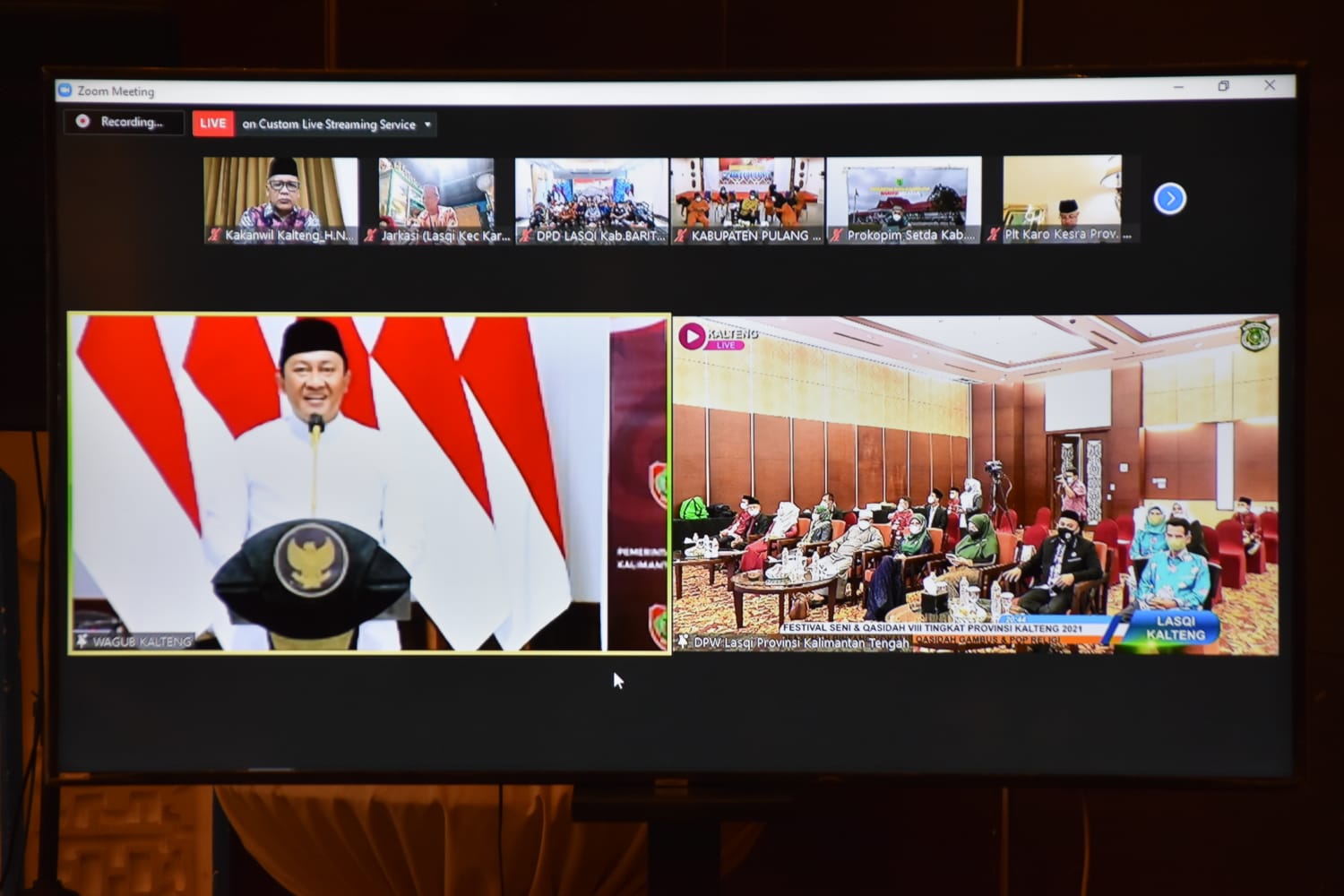 MMCKalteng – Palangka Raya – Wakil Gubernur Kalteng H. Edy Pratowo membuka secara resmi Festival Seni dan Qasidah VIII Tingkat Prov. Kalteng Tahun 2021. Kegiatan ini dihadiri secara virtual dari Ruang Rapat Wakil Gubernur Kalteng, Kamis malam (07/10/2021). Kegiatan tersebut merupakan wahana pemilihan bintang vocalis Qasidah gambus dan pop religi.