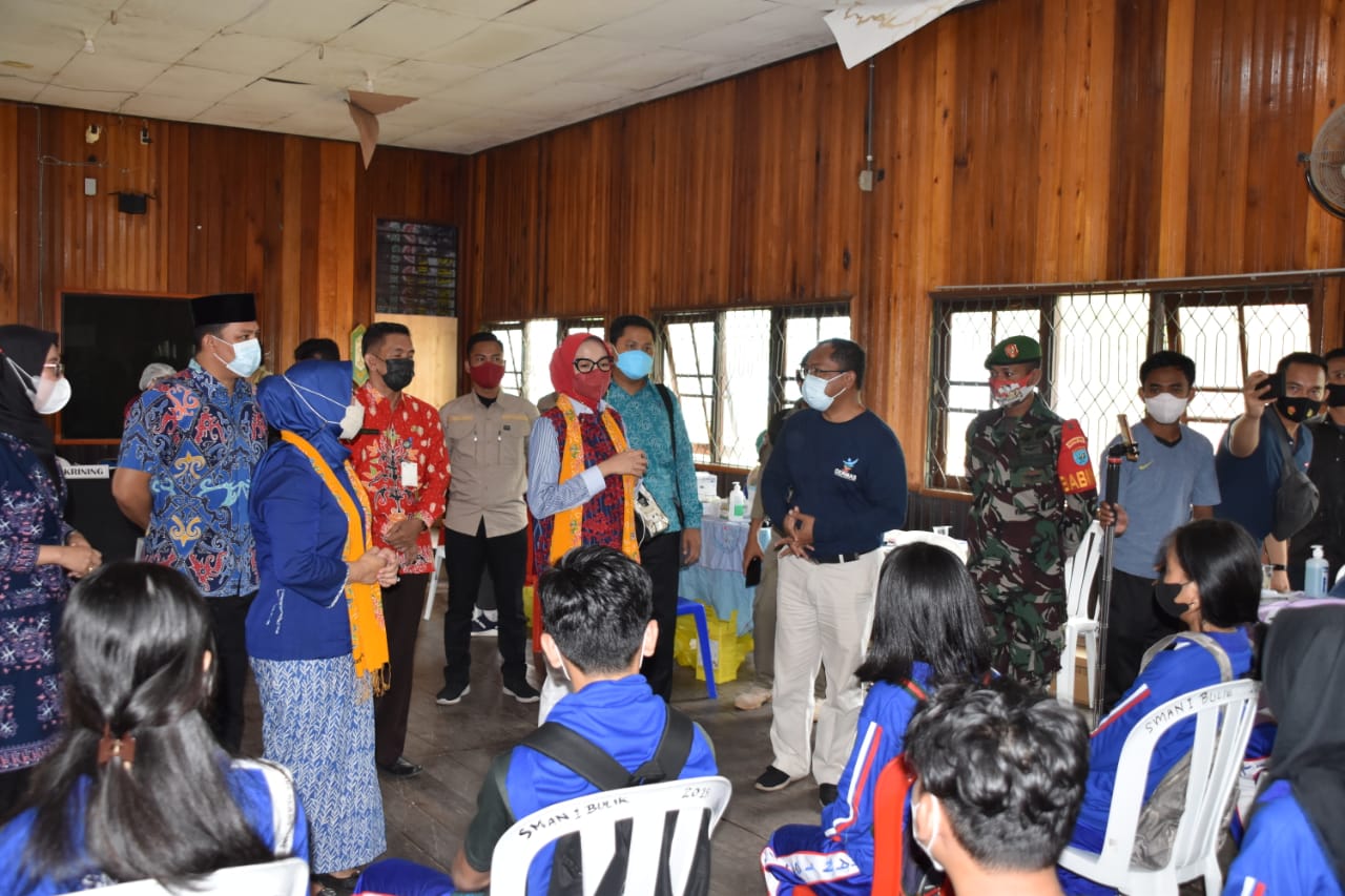MMCKalteng – Palangka Raya – Ketua TP-PKK Prov. Kalteng Ivo Sugianto Sabran meninjau Pelaksanaan Vaksinasi Massal bagi Pelajar di SMAN 1 Bulik, Kabupaten Lamandau, Jumat (15/10/2021). Saat ini, Pemprov. Kalteng menggencarkan program vaksinasi bagi pelajar untuk mendukung pelaksanaan Pembelajaran Tatap Muka (PTM) terbatas di Kalteng.