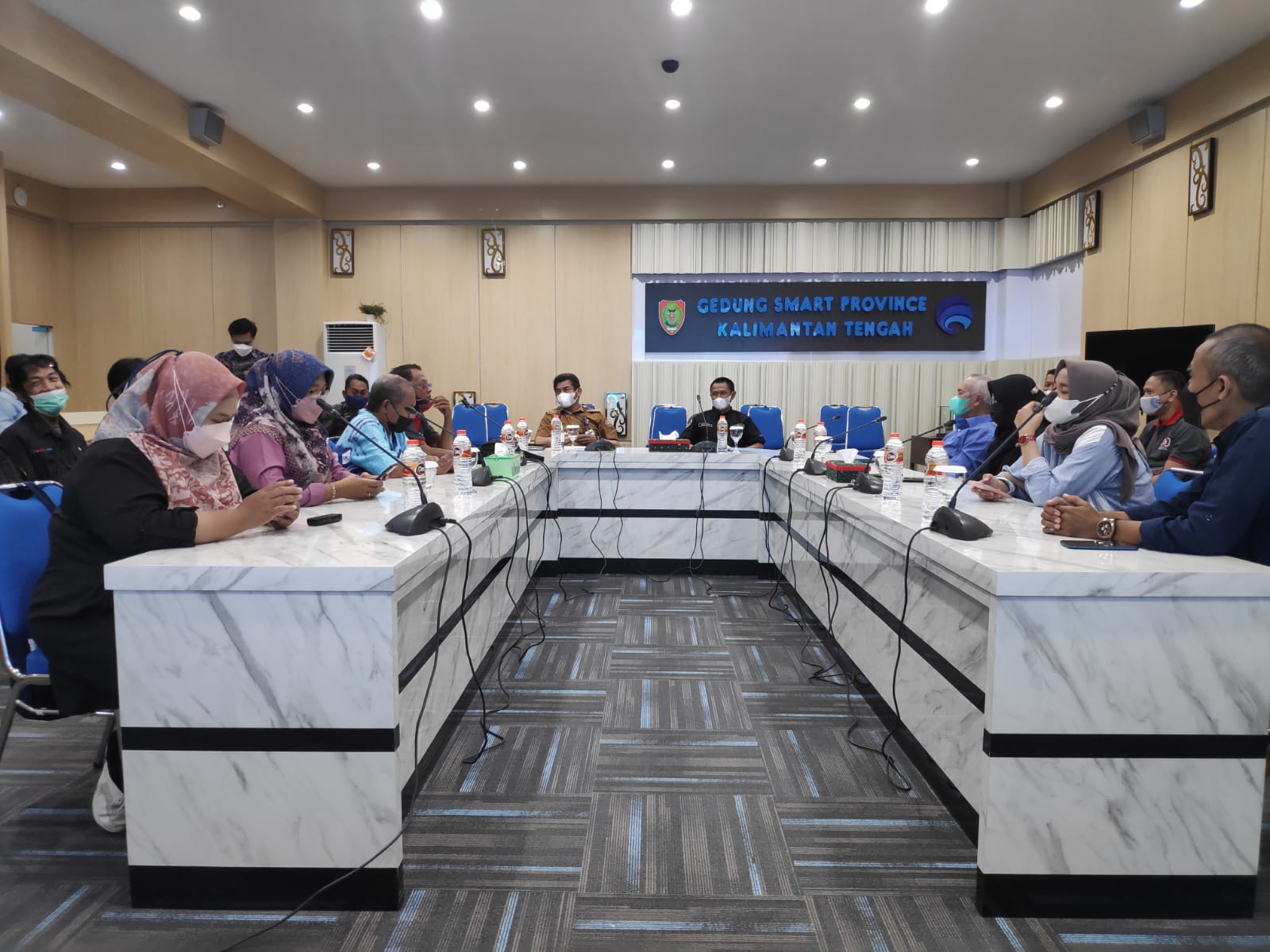 MMCKalteng – Palangka Raya – Plt. Kepala Dinas Kominfosantik Prov. Kalteng Agus Siswadi menerima kunjungan kerja Sekretariat DPRD Prov. Kalimantan Selatan beserta rombongan. Pertemuan berlangsung di Gedung Smart Province (GSP) Diskominfosantik Prov. Kalteng, Selasa (09/11/2021).
